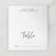 Moderne Hochzeitsstift-Tischnummer-Platzkarte mit "Tisch" in einem schicken Skript und Leerzeilen, damit Sie die Tischnummern und die Namen Ihrer Gäste ausfüllen können. Fügen Sie auf der Rückseite Ihre Vornamen und das Datum des Empfangs hinzu.