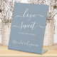 Liebe ist süß! Dieses schlichte und dennoch elegante Kalligraphie-Zeichen zeichnet sich durch elegante Kalligraphie aus. Passen Sie dieses elegante Hochzeitszeichen mit Ihren Namen an! COPYRIGHT © 2020 Judy Burrows, Black Dog Art - Alle Rechte vorbehalten. Moderne Hochzeitsszene Liebe Süß Personalisiertes blaues Himmelszeichen