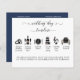 Elegantes, modernes Timeline-Programm. Die Möglichkeit, die Farbe des marineblauen Hintergrunds auf eine andere Farbe zu ändern, die Ihrem Thema entspricht. Personalisieren Sie das Abendbild mit Ihren eigenen Initialen. Verwendung moderner handschriftlicher Kalligrafiedetails. Bilder in eleganten Schwarz-, Grau- und Tauptönen. Möglichkeit, Informationen auf der Rückseite an Anzug Ihre Bedürfnisse anpassen.