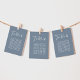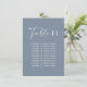 Das kleine, blaue und moderne Dekor der Hochzeitssitze-Tischnummer.