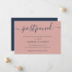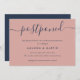 Mit dieser minimalistisch marineblau-blauen und rot-blauen Karte mit einem modernen Script-Schriftart verkünden Sie den Aufschub Ihrer Hochzeit.