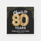 Elegante Servietten zum achtzigsten Geburtstag mit einem stilvollen schwarzen Hintergrund, der in jede Farbe verändert werden kann, funkelnd Glitzer, das Sprichwort "jubelt bis 80 Jahre" mit achtzig goldenen Helliumballons, ihren Namen und das Datum der Feier.