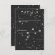 Diese Hochzeitsdetails-Karte zeichnet sich durch einen modernen Holzkohle-Hintergrund aus, der durch ein weißes, funkelndes Overlay hervorgehoben wird, um den Zauber des schönen Winternachthimmels zu veranschaulichen. Ideal für eine Weihnachts- oder Winterhochzeit. Diese Karte ist Teil der modernen Sparkle-Hochzeitssuite "Charcoal Black Winter", die von der einfachen Farmhouse Press kreiert wurde.