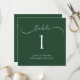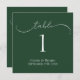 Modernes Hunter Green Script Hochzeitszeichen, um eine moderne Tischumgebung für eine klassische Hochzeit zu schaffen. Personalisieren Sie es vorne und hinten.