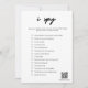 Erleben Sie mit der Modern I Spy Wedding Game Card unvergessliche Momente. Dieses elegante und minimalistische Hochzeitsspiel ist ideal für Paare, die gewollt haben, eine Touch Spaß und Kreativität zu ihrem besonderen Tag hinzuzufügen. Mit diesem ansprechenden I Spy-Spiel werden Ihre Gäste auf eine aufregende Scavenger-Jagd einsteigen, die mit ihren Handys oder Kameras bewaffnet ist. Sie werden während Ihrer Hochzeit eifrig nach bestimmten Gegenständen und Veranstaltungen suchen und jede Entdeckung mit einem Klick erfassen. Von herzlichen Augenblicken bis hin zu offenen Schnappschüssen: Dieses Spiel ermutigt Ihre Lieben, ihre Telefone mit fesselnden Fotos zu sprengen, die die Freude Ihres Festes wirklich verkörpern. Um das Spiel noch interaktiver zu machen, können Sie eine Liste von Dingen für Ihre Gäste anpassen, um "spy" und fotografieren. Ob es sich um einen romantischen Kuss zwischen frisch vermählten Menschen oder um einen faszinierenden Sonnenuntergang handelt, jedes Foto wird zu einer gepflegten Erinnerung. Ihre Gäste können ihre Bilder mit Ihrem Hashtag in den sozialen Medien teilen, sodass Freunde und Familie in der Nähe und fern Teil des Zaubers sein können. Alternativ können sie ihre Fotos mit dem mitgelieferten QR-Code in einen freigegebenen Ordner hochladen, um sicherzustellen, dass kein Augenblick unbemerkt bleibt. Fügen Sie Ihre Hochzeitsfeiern mit der Modern I Spy Wedding Game Card eine Touch der Begeisterung hinzu. Lass das Abenteuer, wenn deine Gäste eine Foto-Scavenger-Jagd starten, die für alle Beteiligten bleibende Erinnerungen schafft.