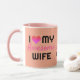 Dieses stilvolle Coffee Tasse Design besticht durch eine moderne und elegante "I LIEBE MY Phantastisch Ehefrau"-Schrift mit schwarzen Schriftzeichen und rosa Schriftzeichen mit niedlichen kleinen rosa Farbtönen auf pfirsichfarbenem Hintergrund. Es ist ein perfektes und einzigartiges Valentinstag, Geburtstag oder Jubiläum personalisiertes Namensgeschenk für Ihre Ehefrau, Freundin oder besondere. Sie können Text, Schriftart und Farben ändern oder entfernen, indem Sie auf Anpassungsoptionen klicken.