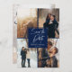 Nehmen Sie Ihre 5 besten Bilder aus Ihrer Verlobung Foto Session mit 4 für die Vorderseite und eins für die Rückseite. Es zeichnet sich durch ein handgeschriebenes Design aus, das Save the Date sagt.