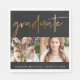 Moderne und schicke Graduiertenserviette mit Imitats goldene Graduate Skript Typografie, zwei Fotos, Name und Klasse Jahr in weißem Text auf einem schwarzen Hintergrund weiße Serviette.