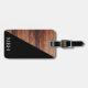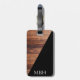 Moderne rustikale schwarze Diagonale und Imitate Holzplanks Gepäckanhänger mit Monogramm Buchstaben.