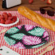 Moderne Imitate Neon Pink Green Tropcal Blätter Pappteller