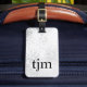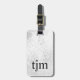 Elegantes, individualisierbares Gepäckanhänger-Design mit IMITATEN, silber und schwarz Hintergrund, weißes, feines Monogramm.
