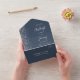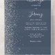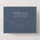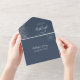 Die links Kulisse dieses eleganten und modernen All-in-One-Hochzeitseinladens und UAWG besticht durch einen silbernen Imitat-Glitzer. Der anpassbare Text kombiniert weiße Schrift, Copperplate und kursiv Schriftart auf indigoblauem Hintergrund. Die Rücksendeadresse erscheint auf der Außentafel und auf der Rückseite der abnehmbaren RSVP-Karte in weißem Text auf massivem Indigo.