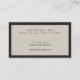 Ein individuelles Logo wird mit Ihren Initialen in einem doppelten Kreis erstellt, um einen unvergesslichen Eindruck auf dieser modernen Visitenkarte für Studenten zu erhalten. Die Sauberkeit und minimale Anordnung auf der Vorder- und Rückseite ist zeitlos und beruflich. Set auf einem Imitat Leinenhintergrundbild mit schwarzem Rahmen für ein klassisches Aussehen. © 1201AM CREATIVE