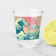 Eine zeitgenössische Neuerfindung des ikonischen "The Great Wave off Kanagawa" mit einer beruhigenden Palette von sanften, blauen, aquamarinen und weißen Wellen, die durch pastellrosa und gelbe Highlights betont werden. Das Kunstwerk beinhaltet einen gedämpften Sonnenuntergang mit Pfirsich- und Lavendeltönen, der harmonisch eine minimalistische Darstellung des Fuji umrahmt. Dieses raffinierte Design verbindet traditionelle japanische Kunstelemente mit einer modernen, eleganten Ästhetik und schafft so ein visuell beruhigendes und anspruchsvolles Stück. Ideal für Kunstliebhaber, die eine Mischung aus Tradition und zeitgenössischem Stil suchen.
