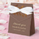 Moderne Coffee Brown and Gold Leaf Gastgeschenk Hochzeit Box Moderne Coffee Brown and Gold Leaf Gastgeschenk Hochzeit Box mit Goldschrift auf kaffeebräuntem Hintergrund mit einem modernen Goldblatt, diese schicken Gefälligkeitsboxen können mit Ihren Namen und Datum personalisiert werden. Die perfekte Touch für Hochzeiten, Brautpartys, Babyduschen, Abschlüsse und Geburtstage. Von RevivaDesigns entworfen