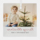 Moderne, elegante Weihnachtsschmuck mit einem großen Foto, festliche Rot-Schrift-Kalligraphie "Frohe Weihnachten" mit klassischen Serifenschriften in Schwarz.