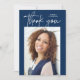 Moderne Kalligrafie Vertikal Zwei Foto Abschluss Dankeschön Sie Card bietet eine lustige und moderne Art, zusammen mit Ihrem Abschluss Foto. Fügen Sie Ihre Dankeschön auf der Rückseite hinzu, oder verlass leer für eine handgeschriebene Nachricht.