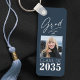 Ein trendiger, neuer zweiseitiger, robuster Aluminium, Graduate Schlüsselanhänger - Keyring mit Foto vorne. Alle Personalisiert, mit "Grad" in elegantem kalligraphischen Tintenskript mit "Klasse von, Das Jahr, Schulname & Ihr Name" in der modernen Typografie. Das Foto des Absolventen wird kunstvoll mit einem zarten Gradientenband betont. Der Text und die Schnittfläche sind weiß mit dem Hintergrund in einem modernen skandinavischen Blau. Wenn Sie möchten, bearbeiten Sie einfach die Hintergrundfarbe in der Grundfarbe Ihrer Schule. Die perfekte Abschluss Geschenkidee für Gymnasiasten, Unis und Studierende.