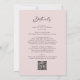 Alles in einer trendigen modernen schwarzen Kalligrafie Script Chic Blush Pink Hochzeitseinladung... Unsere trendige "Vor- und Rückseite"-Blush und Schwarz-Hochzeitseinladung bietet schicke, moderne Kalligraphie-Skripte kombiniert mit Serif- und Sans-Serif-Text für eine einfache klassische Hochzeitseinladung. Die Rückseite der Einladung enthält alle Details, die Sie normalerweise auf separaten Karten im Hochzeitspaket sehen würden. Diese moderne Hochzeitseinladung wurde entworfen, um sowohl trendig als auch preisbewusst zu sein... ganz zu schweigen von der Zeit, die für geschäftige Bräute gerettet ist. Auf der Rückseite befindet sich auch ein Beispiel für QR-Codegrafik, das Sie in Sekunden durch Ihren eigenen QR-Code direkt auf der Personalisierungsvorlage ersetzen können. Alle Beispieltexte (außer den grafischen Kalligraphieelementen) können mit eigenen Informationen über die Personalisierungsvorlage leicht überarbeitet werden.