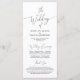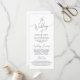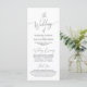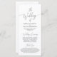 Elegante moderne Kalligraphie, Schwarze Schrift, Zeremonie Hochzeit Kirche Programm in Karte (lang). Es ist mit Scrollakzent entworfen, der personalisiert werden kann mit benutzerdefiniertem/personalisiertem Text für Ihr Brautparty, Zeremonie Details, Gedenkhinweise und Dankeschön-Nachricht.