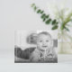 Modernes Kalligrafieschrift "Willkommen" mit einem großen Foto, zwei kleinen Fotos in einem Rahmen mit Geburtsstatistiken und einer eigenen Postkarte für die Ankündigung.