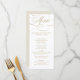 Ein zeitloses und elegantes Hochzeitsmenü mit raffinierter Kalligraphie-Schrift auf klassischem Hintergrund, perfekt für eine formale und anspruchsvolle Hochzeitsfeier. Für die Anpassung oder weitere Produkte mit diesem Design, bitte kontaktieren Sie mich.