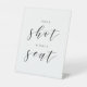Maßgeschneidertes Hochzeitssitzschild mit dem modernen Kalligrafiedesign "Take a Shot and Take a Seat".