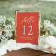 Lassen Sie Ihre Hochzeit mit einer Touch von Eleganz und Herzlichkeit ausklingen, mit unseren eleganten Tischnummern-Karten, die eine wunderschöne weiße Kalligraphie auf einem reichen Verona-Sonnenuntergang-Orange-Hintergrund aufweisen. Dieses moderne und schicke Design verleiht dem Hotel einen lebendigen Pop und eignet sich für Hochzeiten zu jeder Jahreszeit, von romantischen Frühlingsveranstaltungen bis hin zu gemütlichen Herbstfeiern. Personalisieren Sie jede Karte mit Ihren Namen und Hochzeitsdatum für ein einzigartiges und bedeutendes Detail, das Ihre Gäste erfreuen wird. Diese Tischnummern verbinden Stil und Praxisnähe und helfen Ihnen, Ihren Sitzplatz zu organisieren, während Sie Ihrem Hochzeitstag ein atemberaubendes Dekorationselement hinzufügen. Fügen Sie jede Tischnummer in Ihren Warenkorb, um zu bestellen und Karo nach Abschluss.