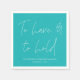 Diese personalisierten eleganten Hochzeitsnapkins mit dem Hochzeitsvow "Zu haben und zu halten" sind eine elegante Ergänzung zu Ihrem Hochzeitsempfang, Hochzeitsessen oder Hochzeitsfeier. Ausgeklügeltes, minimalistisches Kalligraphieskriptdesign auf solidem türkisfarbenem Hintergrund - einfach und elegant. Alle Farben - Text und Hintergrund - können mit dem Designwerkzeug geändert werden! In meinem Shop sind passende Weinflaschen erhältlich.