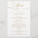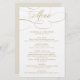 Ein zeitloses und elegantes Hochzeitsmenü mit raffinierter Kalligraphie-Schrift auf klassischem Hintergrund, perfekt für eine formale und anspruchsvolle Hochzeitsfeier. Für die Anpassung oder weitere Produkte mit diesem Design, bitte kontaktieren Sie mich.