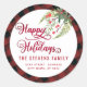 Moderne karierte Schrift Happy Holidays Rot heilig Runder Aufkleber