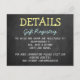 Moderne Chalkboard Typografie Hochzeitsdetails Karten. Fügen Sie diesem Design Ihre benutzerdefinierte Formulierung hinzu, indem Sie die "Diese Vorlage bearbeiten"-Felder auf der rechten Seite des Elements verwenden, oder klicken Sie auf die blaue Schaltfläche "Anpassen", um den Text anzuordnen, die Schriftart und Farben zu ändern und um diesem Design zusätzliche Informationen oder Bilder hinzuzufügen.