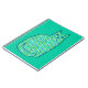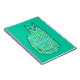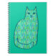 Notebook mit modernem Retro-Katzendesign in abstraktem Farbbandmuster - Minze, Kalkgrün, Aqua und Türkis, dunkelaquamarin umrissen, auf mittlerem Minzgrün/Pfauengrün