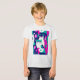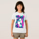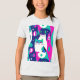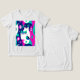 Shirt in modernem, inspiriertem Design mit zwei stilisierten Katzen in fett geometrischen Formen von Türkis, Magenta, Dunkelblau und Weiß. Abstrakte Muster und Retro-Formen ergänzen den Hintergrund und geben ihm ein Vintages, unterhaltsames Ambiente mit minimalistischem Rand.