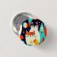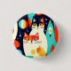 Knopf in modernem, inspiriertem Design mit zwei stilisierten Katzen in fett-geometrischen Formen in Orange, aquamarin, Schwarz und Weiß. Abstrakte Muster und Retro-Formen ergänzen den Hintergrund und geben ihm ein Vintages, unterhaltsames Ambiente mit minimalistischem Rand.