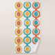 Dieses Set ist mit einem türkisfarbenen Waschlappen, einem orangefarbenen Handtuch und einem Badehandtuch ausgestattet, das Mitte des Jahrhunderts durch ein modernes Kreislaufdesign ergänzt wird, das zu einer Kette mit weißen und farbigen Kreisen führt. Woll verschiedene Farben? Nachricht.