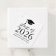 Fügen Sie Ihrer Abschlussfeier eine personalisierte Touch hinzu, Gefälligkeitssäcke mit diesen modernen Abschluss Gefallen Tags! Die einfachen Gefälligkeitstags verfügen über eine schwarze Graduierungshülle ganz oben im Design mit "Class of 2024" in fett schwarzer Schrift. Personalisieren Sie den Tag mit dem Namen des Absolventen, Schule und Abschluss Jahr. Die Rückseite des Tags bietet Platz für Ihren benutzerdefinierten Text. Dieses Design eignet sich perfekt für High School oder Uni-Abschluss.