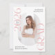 Verkünden Sie die große Leistung des Absolventen im Stil mit dieser modernen Foto Abschluss Ankündigung. Das trendige Design zeichnet sich durch "Class of 2025 Grad" in fett hellrosa Schriftzeichen mit subtilen Schriftzeichen mit einem soliden weißen Hintergrund aus. Das vertikale Foto des Absolventen wird in einem länglichen Rahmen im Zentrum der Ankündigung angezeigt. Personalisieren Sie die Vorderseite der rosa Abschluss Ankündigung mit dem Namen und der Schule des Absolventen. Die Ankündigung kehrt zurück, um ein zusätzliches Foto in einem weißen Rahmen mit dem unten angezeigten benutzerdefinierten Text anzuzeigen. Die stilvolle Abschluss-Ankündigung ist ideal für Absolventen der Highschool und der Uni.