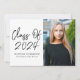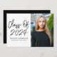 Moderne Abschlussfeier lädt mit "Class of 2023" in einem schwarzen handgeschriebenen Drehbuch auf weißem Hintergrund ein. Personalisieren Sie die Vorderseite des Abschlusses einladen, indem Sie den Namen, den Schulnamen und das vertikale Foto des Absolventen. Die Einladung kehrt zurück, um Ihre Abschlussfeierdetails in weißer Schrift auf schwarzem Hintergrund anzuzeigen.