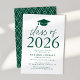 Einladende Gäste, um den Grad mit unserer modernen Klasse von 2025 Abschlussfeier lädt ein. Die Einladungen sind mit einem Graduierungsdeckel oben mit der "Klasse von 2025" in grün-moderner Schrift dargestellt. Personalisieren Sie die Einladungen, indem Sie den Namen des Absolventen, Schule und Abschlussfeier Details hinzufügen. Die trendige Graduierungsparty lädt zum Umkehren ein, um ein grün-weißes Trellis-Muster zu zeigen.