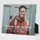 Feiern Sie Ihren Absolvent mit dieser modernen Abschluss-Plakette mit einem Schild. Einfaches Design mit einem Senior-Portrait Ihres Abschlusses mit weißem gestreiften Overlay-Wortlaut in verschiedenen Sportstil Schriften, die mit dem Namen der Absolventen, Schule und Klassenjahr personalisiert werden können. Macht einen schönen Sake, der in Ihrer Zuhause angezeigt werden kann.