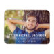 Feiern Sie mit diesem modernen Abschluss-Magneten Ihren Absolventen stilvoll. Design bietet ein höheres Foto mit weißem gestreiften Overlay-Wortlaut, der mit dem Namen der Absolventen, der Schule und dem Unterrichtsjahr personalisiert werden kann.
