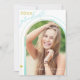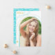 Mit dieser Ankündigung des Abschlusses kündigen Sie den Erfolg Ihres Absolventen mit einem Foto-Bogen an, der Ihren Absolvent mit weißem Overlay-Text hervorhebt. Auf der Rückseite ist ein leicht wiederholbares Muster Ihres Abschlusses in Weiß auf einem hellen, lustigen blauen Hintergrund zu sehen.