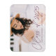 Feiern Sie den Abschluss mit unserem stilvollen Foto Abschluss Magneten. Der Magnet des Abschlusses zeigt das Foto des Absolventen mit "Class of 2025" in einem lila, modernen Kalligrafieschrift-Overlay mit einem optionalen weißen Farbverlauf. Personalisieren Sie den modernen Magneten des Abschlusses, indem Sie den Namen und den Namen des Absolventen hinzufügen. Das Design eignet sich sowohl für Absolventen der Highschool als auch für Absolventen der Uni.