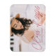 Feiern Sie den Abschluss mit unserem stilvollen Foto Abschluss Magneten. Der Magnet des Abschlusses zeigt das Foto des Absolventen mit "Class of 2025" in einem magenta modernen KalligraphieskriptOverlay mit einem optionalen weißen Farbverlauf. Personalisieren Sie den modernen Magneten des Abschlusses, indem Sie den Namen und den Namen des Absolventen hinzufügen. Das Design eignet sich sowohl für Absolventen der Highschool als auch für Absolventen der Uni.