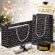 Ein stilvolles monochromes Layout mit Reihen von knackigem weißen Text der Klasse 2026 vor einem tiefschwarzen Hintergrund, das eine saubere und zeitgemäße Abschlussästhetik bietet.