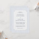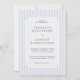 Diese moderne gestreifte Hochzeitseinladung zeigt elegante staubblaue und schiefergraue vertikale Linien, die mit einem raffinierten minimalistischen Layout kombiniert sind. Die weiche Farbpalette schafft einen zeitlosen klassischen Look und bewahrt gleichzeitig ein frisches, zeitgenössisches Gefühl. Ein formales Rahmendesign fügt subtile vintagehafte Anmutung hinzu und macht sie perfekt für traditionelle, kirchliche, gärtnerische oder outdoor-Hochzeiten.