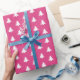 Moderne klassische weiße Weihnachtsbaumen auf Rosa Geschenkpapier