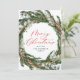 Moderne minimale Blatt Kranz-Skript Frohe Weihnachtsfeiertage Weihnachtskarte. Handgemalte Eukalyptus, Kiefernzweig, minimales Laub und moderne rustikale Kränze verleihen dieser Ferienkarte ein luxuriöses Ambiente. In klassischen Grüntönen, Braun und Grau.