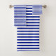 Moderne Kobaltblau-weiße Streifen Muster chic Bath Handtuch Set. Ideal für Wassersport, Küstenschifffahrt, Strand, Strandliegen.